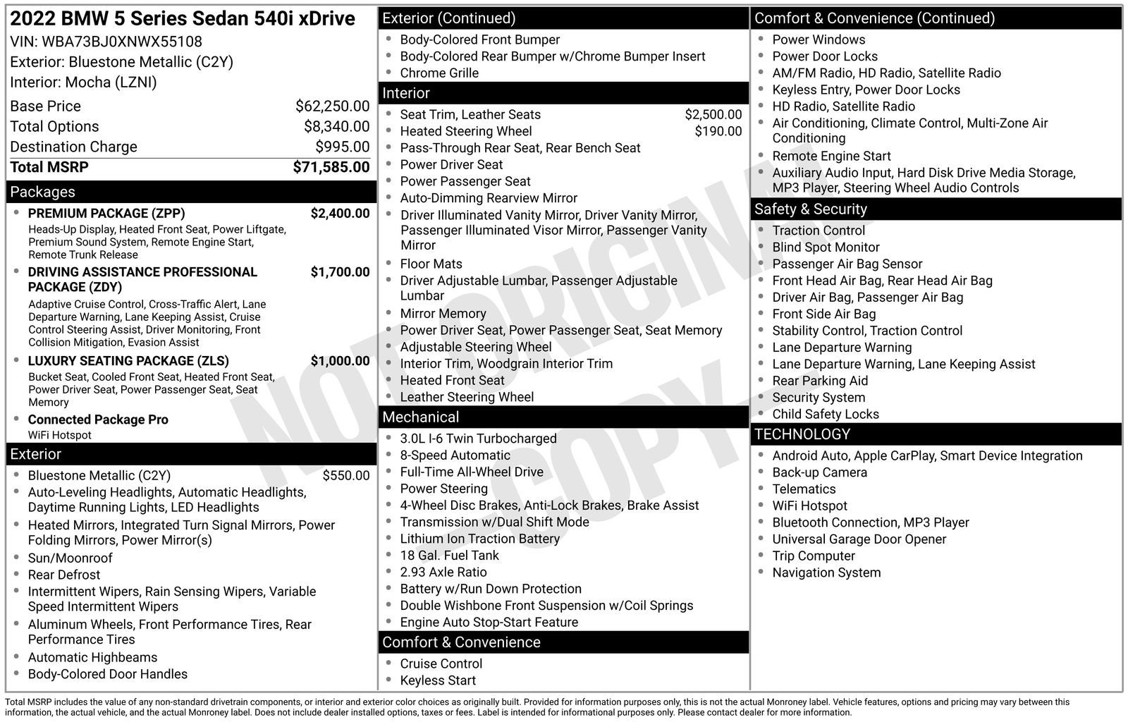This 5 Series is more than just a car – it's a testament to BMW's commitment to performance, technology, and craftsmanship. With a city fuel economy of 22 MPG and a highway rating of 29 MPG, you can enjoy the thrill of the drive without sacrificing efficiency.
