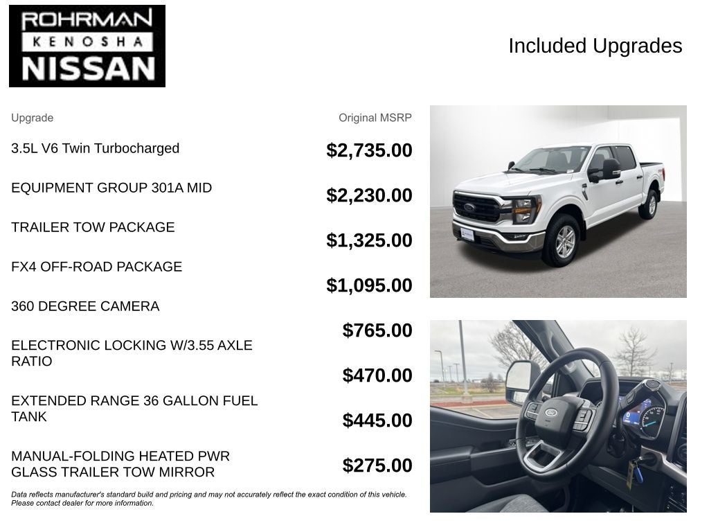 - Outfitted with the FX4 Off-Road Package, this truck is ready to conquer the great outdoors. Enjoy the benefits of off-road tuned shock absorbers, skid plates, rock crawl mode, and more.