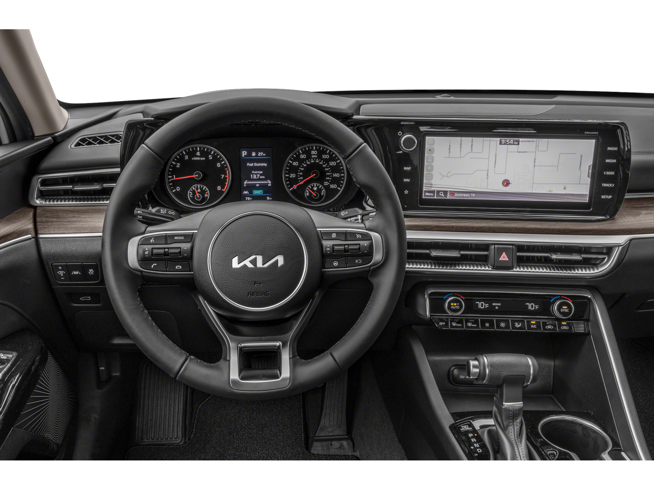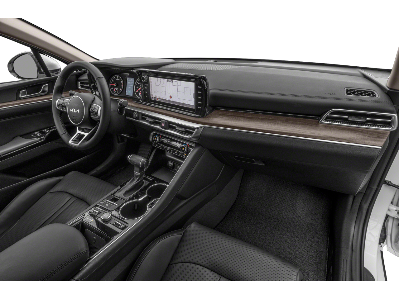 Step inside this Kia K5 and you'll be greeted by a spacious and well-appointed cabin featuring: