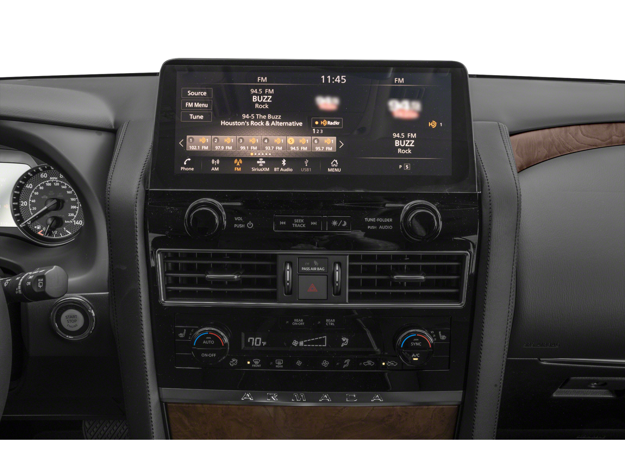 Elevate your driving experience with the Armada's heated steering wheel, heated front bucket seats, and the sleek, 20-inch alloy wheels. The Midnight Edition Floor Mats and Cargo Mat add a touch of refinement to the interior, while the Illuminated Kick Plates welcome you in style.