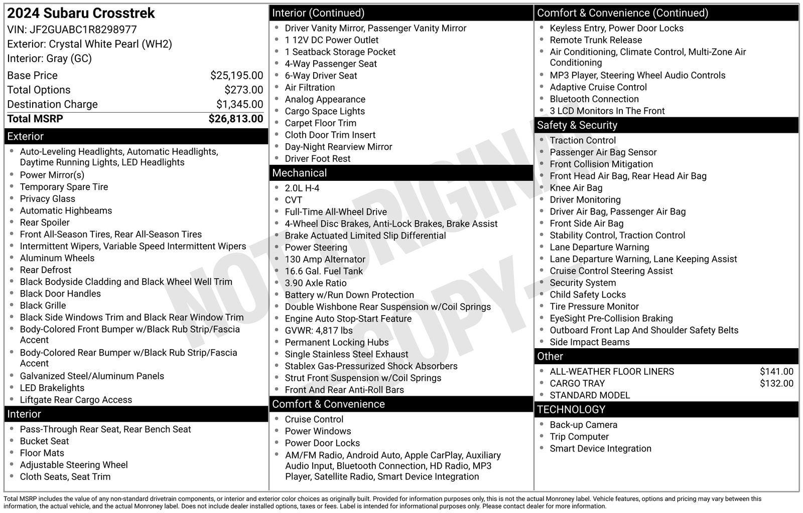 - Vehicle Name: Subaru Crosstrek