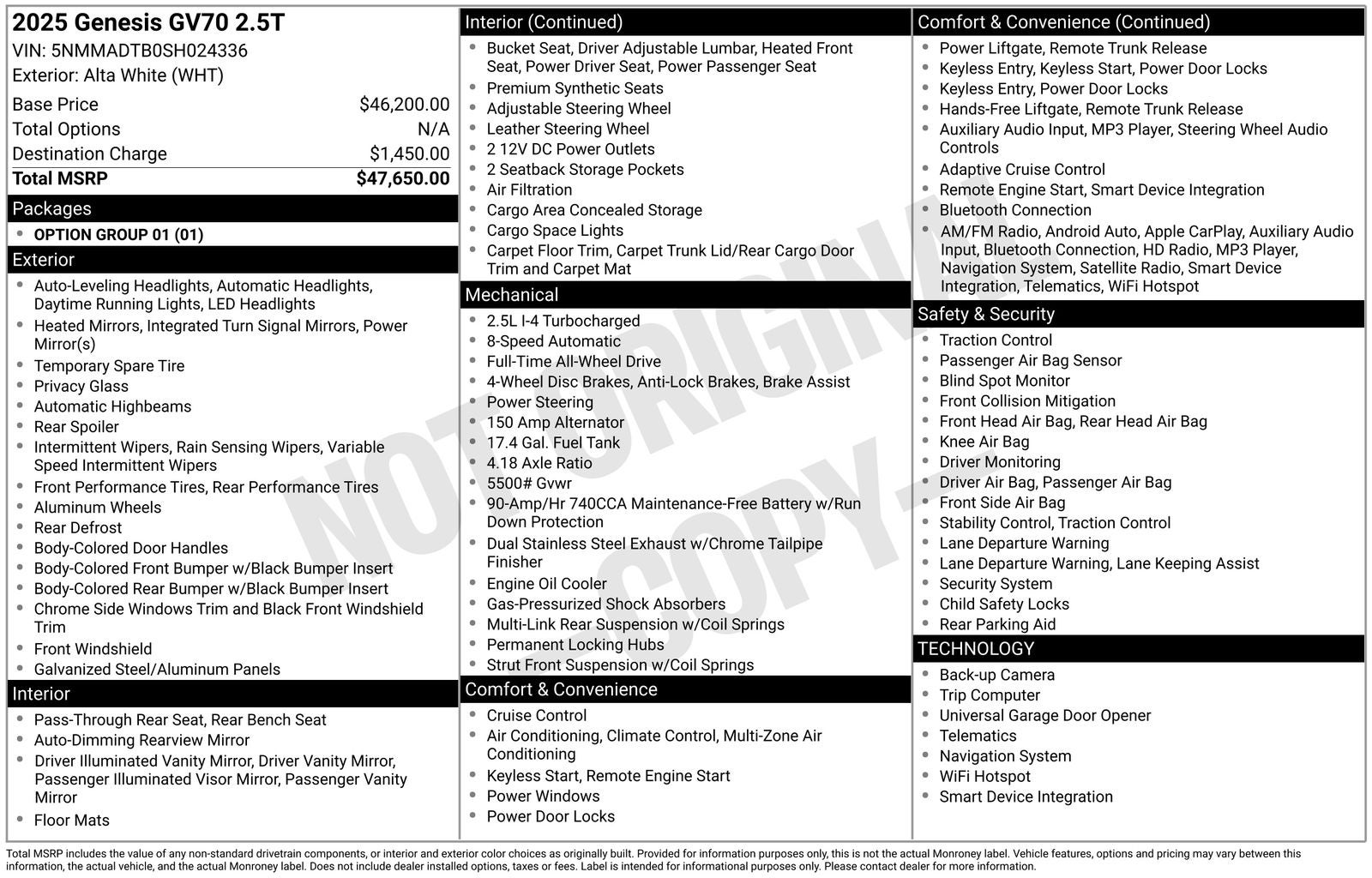 - Vehicle Name: Genesis GV70